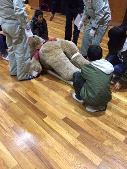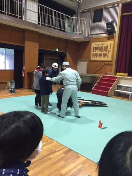 災害が起きたときにどのように行動したら良いかなど、今日は地域の方々にたくさんのことを教えていただきました。5・6年生は、ジャッキを使った救助体験、毛布担架体験、紙皿作りを行いました。