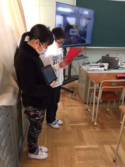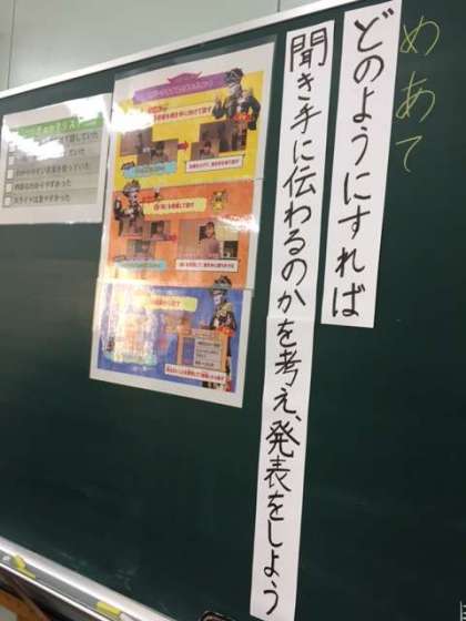 自分たちが調べたことを伝えるためには、相手を見て、自分たちの言いたいことを簡潔に伝えることが大切なので、発表前には、自分たちの発表を動画で撮って確認していました。