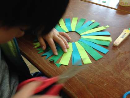 土台の紙に、1枚1枚丁寧に色紙を貼り付けることができました。