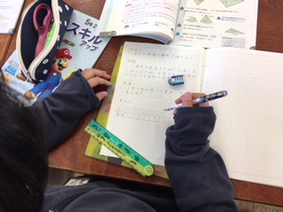 今日は、三角形の高さと面積の関係を学びました。積極的に取り組んでいる姿が見られました。