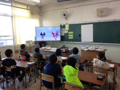 2020年 東京オリンピック・パラリンピック大会のマスコットを選びました。子どもたちは、紹介のビデオをしっかりと観て、