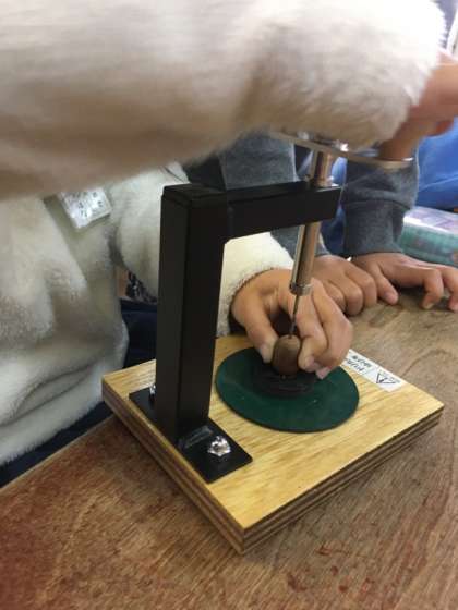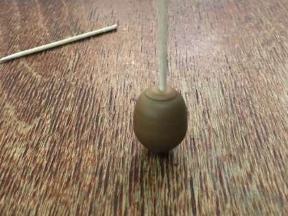 穴あけ機をくるくる回して、つまようじをさして作りました。