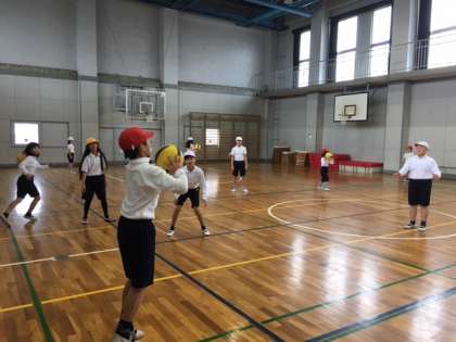 右手で投げたり、ふんわり山なりのパスを投げたりしました。