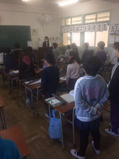 5時間目は教室で音楽をしました。「笑顔かさねて」の歌声が校舎に響いていました。また、リコーダーで「山のポルカ」を2部合奏しました。