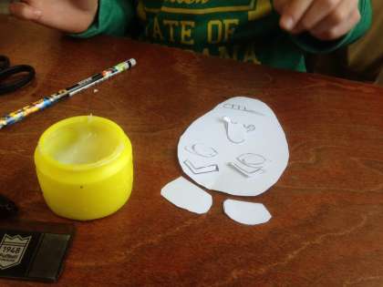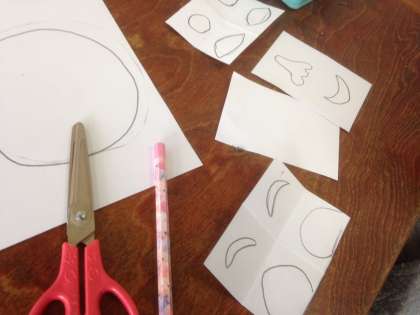 図工の時間に、紙はんがで使う顔のパーツを作りました。