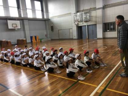 リーダーを中心に自分たちで整列したり、タンバリンの音に合わせて動いたりしました。