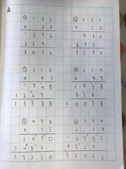 今日は3けた×2けたのかけ算に取り組みました。