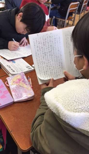 「いにしえの言葉に学ぶ」の学習では、昔の人の名言やその解説文から考え方を知り、これまでの自分の体験と結び付けて、文章を書きました。今日は、文章をグループで交流し、班の代表者を選び、全体に発表しました。