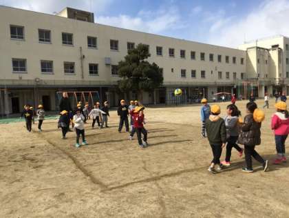お昼休みは、一緒にドッジボールをしてもらいました。