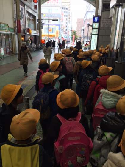 子どもたちは、どんなお店があるのか確かめながら商店街を見学しました。
