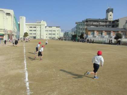 たくさんの保護者の方が見守る中、子どもたちは一所懸命運動場を走っていました。