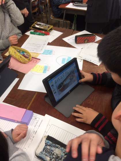 和の文化に関係することについて、調べたことをタブレットを使ってまとめました。
