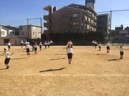 今日の体育は、なわとびとラインサッカーを行いました。