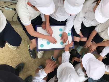 みんな作戦ボードを使って、どうしたら得点を取ることができるのか考えていました。