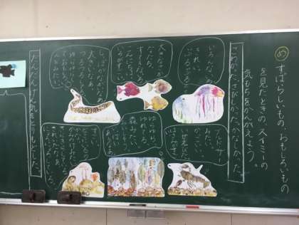 今日は、スイミーがいろいろな海の生き物に出会う場面を学習しました。