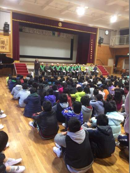 普段から子どもたちがお世話になっている、地域見守り隊、図書ボランティアのみなさんにお礼をしました。