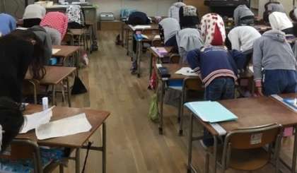 一人ずつセリフを言う、みんなで声を合わせる、礼をそろえるなどの練習をしました。