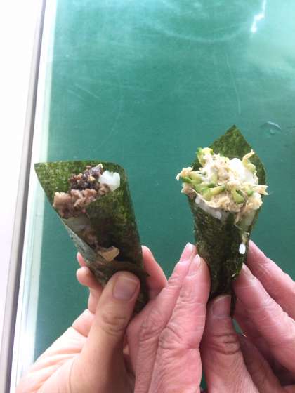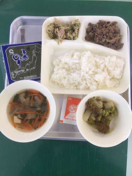 メニューは、手巻きごはん(牛肉の甘辛煮、ツナソテー)、すまし汁、和なしのまっ茶クランブル、牛乳でした。