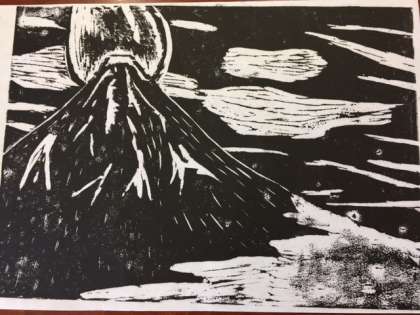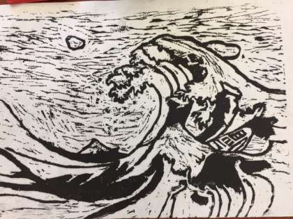 木版画が完成しました。彫り方や、使用する彫刻刀により、それぞれちがう味のある作品に仕上がりました。