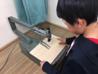 絵の具を塗り終わった子たちは、電動のこぎりでパズルにしていきます。