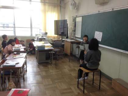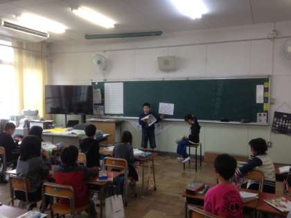 ねこと子ねずみの言葉や様子から、気持ちを考えています。音読劇ではそれぞれの役になりきり、班ごとに発表することができました。