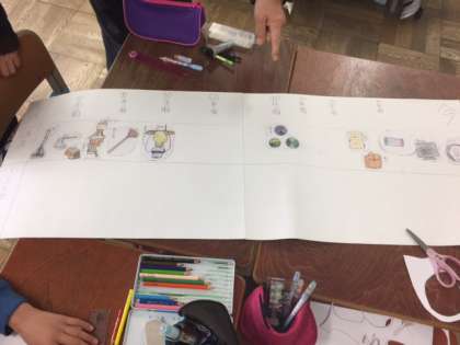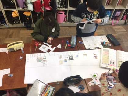 班の話し合いの中で、「これは何年前に使われていたのかな?」「これは70年前の道具だよ。」と資料をもとに教え合う姿がみられました。