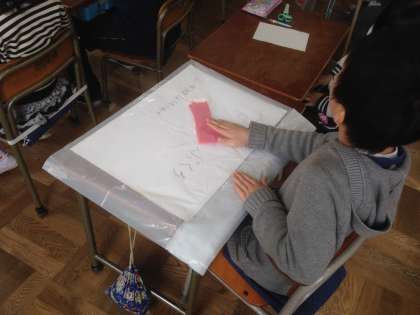 2年生で作った作品を持って帰るための袋です。また、お家に持って帰った際に見てあげてください。