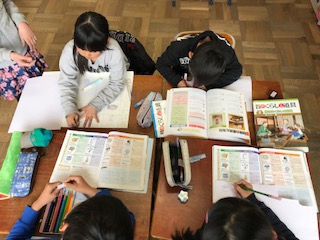 教科書や図書資料を使ってみんな一生懸命調べていました。