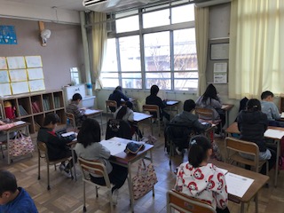 みんな旭区のことについて一生懸命考えて問題に答えていました。