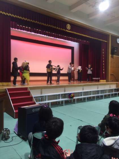 茶話会の終わりには、子どもたちみんなで合奏をしました。