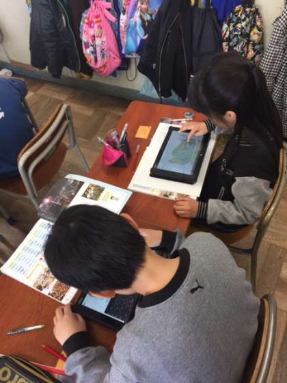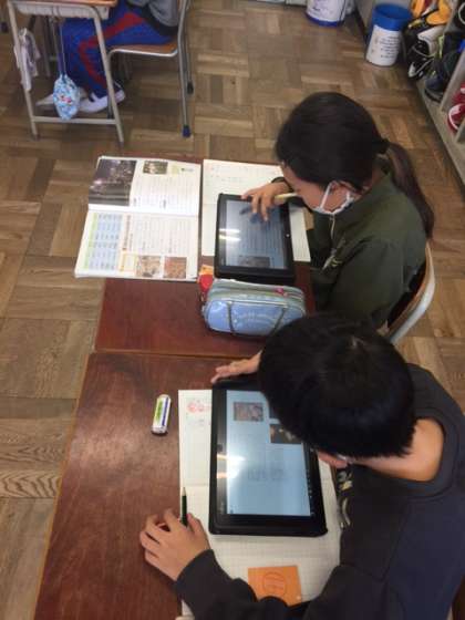 わたしたちの町『大阪市』に伝わる祭りや行事をタブレットで調べました。