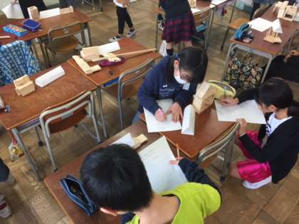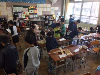 完成した「トントン・ドンドン くぎ打ち名人」の作品を鑑賞しました。