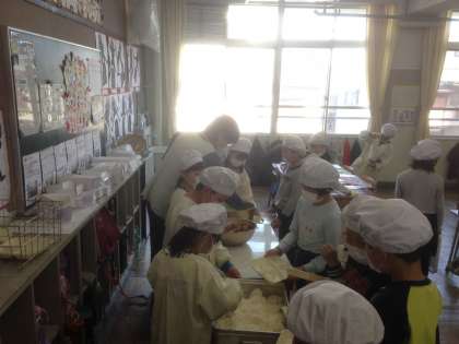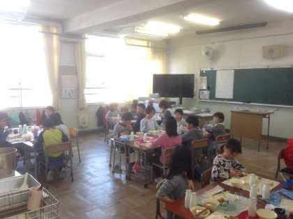 教室では、自分たちでごはんやおかずの量を調節しながら盛っています。