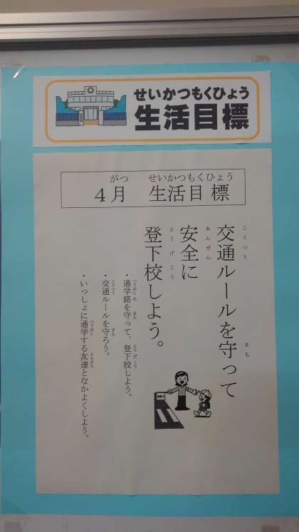 城北小には、毎月の生活目標があります。毎週月曜の児童朝会でもお話があります。