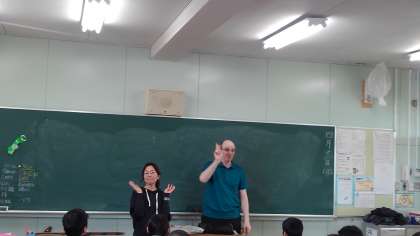 C-netのManuel Joaquin先生と、大宮中学校より田村 尚子先生が今日から毎週月曜に外国語活動を教えに来ていただきます。
