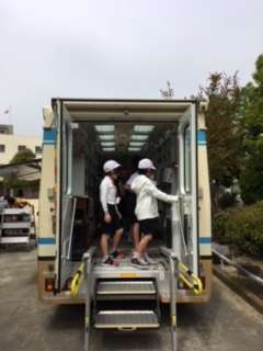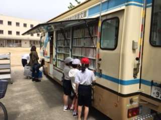 旭区移動図書館の『まちかど号』が、城北小学校にやってきました。