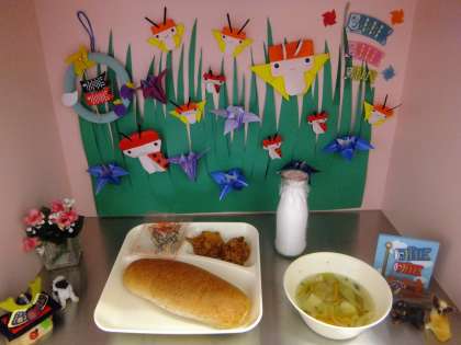 今日の献立の“一口トンカツ”は、衣をつけるところから手作りでした。食べやすい大きさだったので、子どもたちにも「おいしい、おいしい」と人気の献立でした。