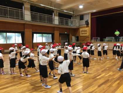 最後は、グループになるゲームをして、クラスの違う友達やあまり知らない友達とも声を掛け合ってグループを作ることができました。
