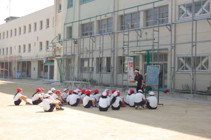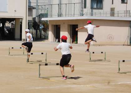 子どもたちはハードルの跳び越え方を思い出しながら、一生懸命に運動していました。
