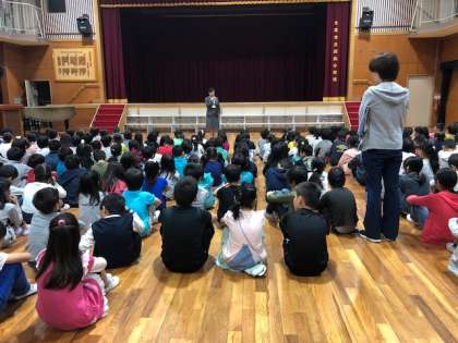 2年生の子供たちも、校長先生の問いかけに答え