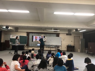 「My name is 〜.I'm from 〜.」と英語で自己紹介をして、