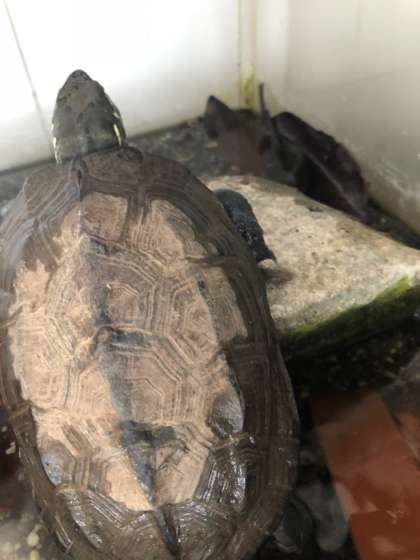 シロカメくんは職員室前で飼育しています。