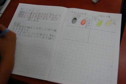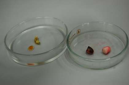 発芽前と発芽後の種子の、含まれている養分の量の違いについて、ヨウ素液を使った実験をしました。