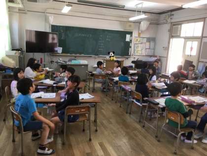 音楽の時間には、みんなで円になって手をつなぎながら「ひらいたひらいた」を歌ったり、ペアでリズム遊びをしたりしました。
