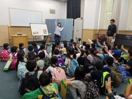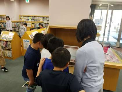 そのあとでパネルシアターや大型絵本の読み聞かせをしていただき、自由読書の時間を取りました。図書館のマナーを守り、静かに読書を楽しんだり、コンピューターを使って図書を検索する方法を教えていただいたりしました。