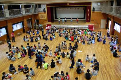 たてわり班が決まって初めての児童集会でした。「ボール送り自己紹介ゲーム」を行い、みんなで自分の好きなものを伝え合いました。