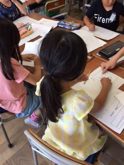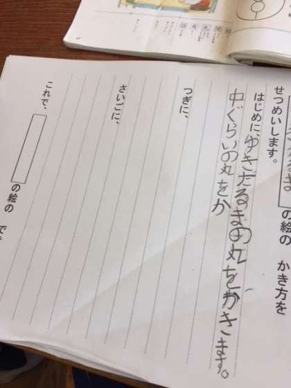 今日の国語では、「ことばで絵をつたえよう」の学習をしました。聞く人にわかりやすい順序で伝えるためには、どのような文章を書いたらよいのかを班で話し合って学習を進めました。