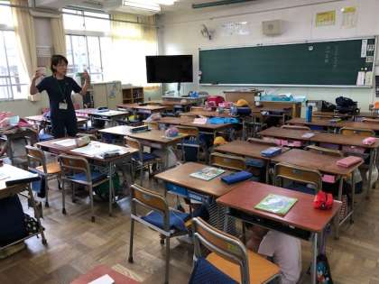 教室に戻ってからは、もしもの際に備えて隠れる練習をしました。