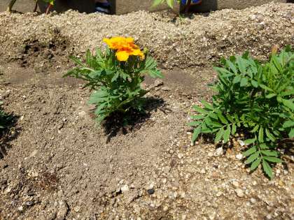 植物の体のつくりを学習するため、学習園のマリーゴールドとホウセンカを掘り出して、観察をしました。根を水で洗って土を落とすと、普段は見えない部分が観察できて、子どもたちからは歓声が上がりました。「根は白いねぇ」「ホウセンカの根はピンクっぽいよ」「根は茎から出てんねんな」などなど。「あ、そうか。根が長いから、さっき先生は周りの土ごと掘り起こしたんか」と植物の体のつくりに気づいた呟きも聞こえました。