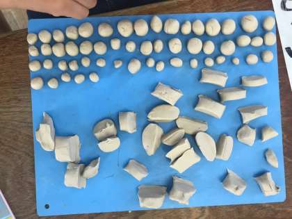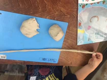 へらを使うときは、慣れない手つきでお料理でもしているように、慎重に切っていました。ちぎったり、丸めたり揉みこんだり、にぎったり、手に感じる感触とどんどん変身していく形に皆、楽しく取り組むことができました。